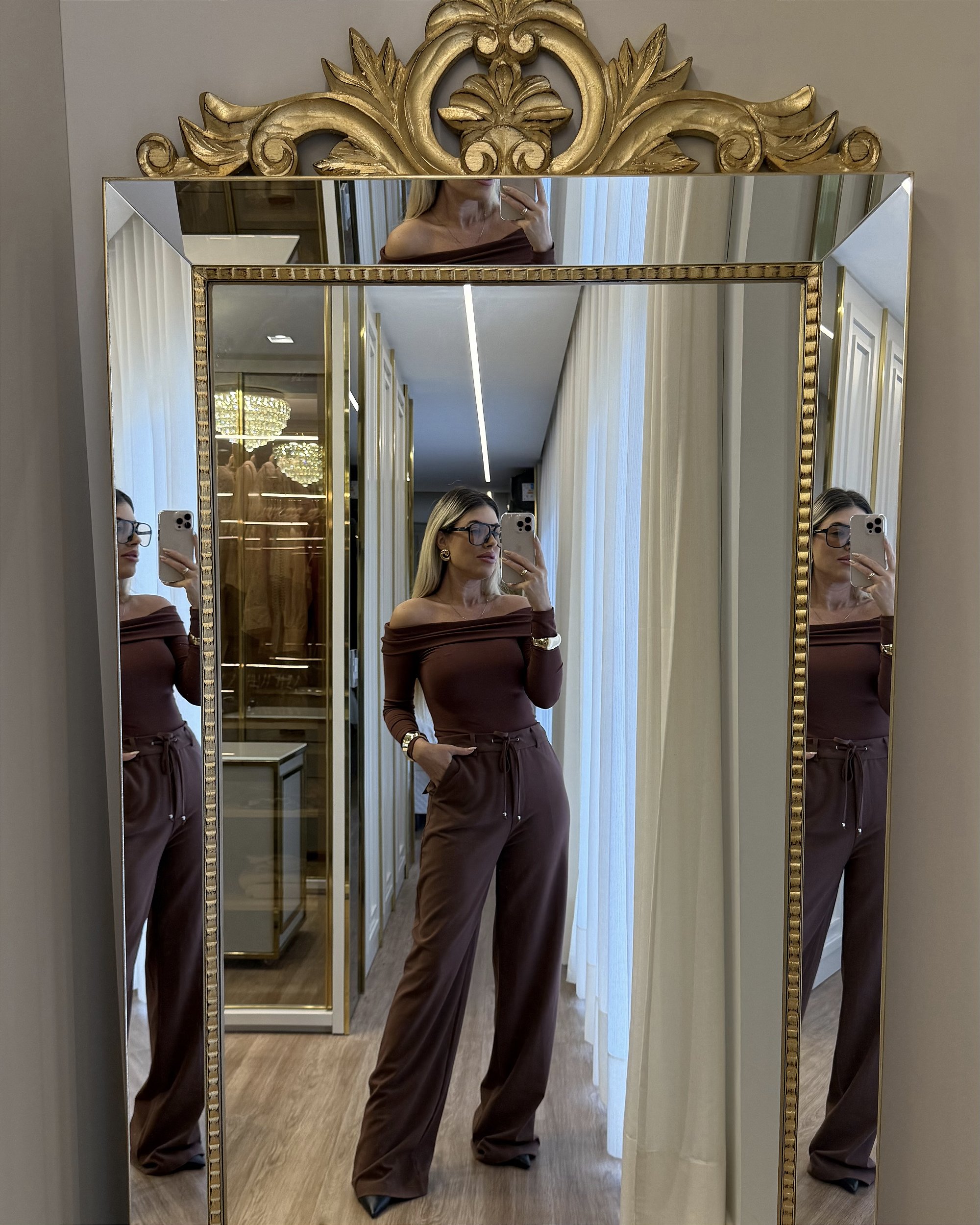 Blusa de tecido leve com toque suave, recorde ombro a ombro.