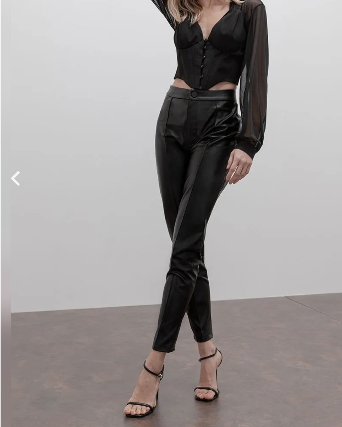 Calça skinny lisa, cós duplo estruturado, no mesmo tecido. Abertura no centro cós frente com caseado e botão forrado. Com zíper logo abaixo do cós. Detalhe de vinco em todo o comprimento frente. Pences e bolsos funcionais no traseiro. acabamento da barra em bainha.